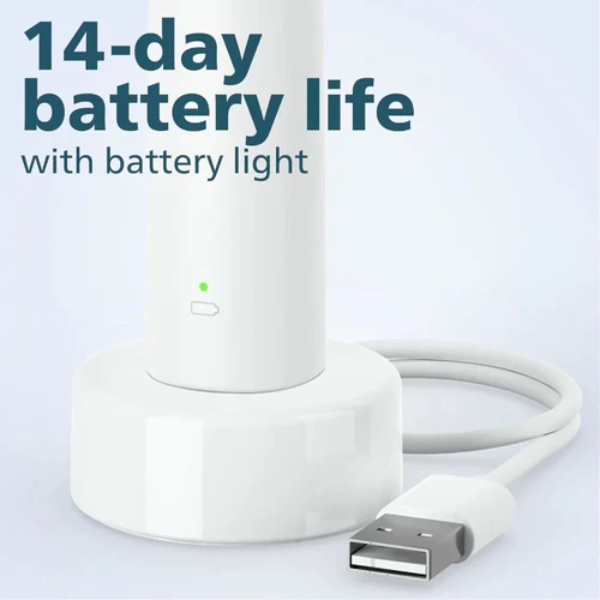 Bàn chải điện Sonicare với công nghệ sonicare tiên tiến được chứng minh lâm sàng về khả năng loại bỏ mảng bám hiệu quả hơn gấp 3 lần* so với bàn chải thường. Bàn chải này loại bỏ mảng bám trên răng và dọc theo đường viền nướu, đồng thời bảo vệ nướu răng của bạn