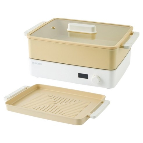 Bếp lẩu nướng đa năng Dr.Hows 3in1 bao gồm cả chảo và nồi, giúp bạn dễ dàng thực hiện mọi công việc nấu nướng, từ hấp, luộc đến chiên, nướng và xào an toàn, giữ nhiệt ổn định, nắp kính (màu vàng)