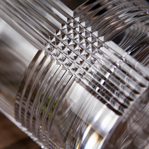 Nó kết hợp các đường sọc thời trang và họa tiết caro hoàng gia vào những chiếc ly pha lê, làm nổi bật phong cách Anh Quốc mạnh mẽ. Kỹ thuật khắc thủ công V-cut đặc trưng của ROGASKA, với những đường thẳng liền mạch và họa tiết hình thoi vuông chính xác, tạo nên tỷ lệ hoàn hảo cho họa tiết khắc trên thủy tinh.