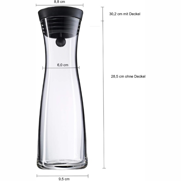 Bình thủy tinh WMF Wasserkaraffe Basic 1L cao 29 cm, bình thủy tinh, nắp đen hoặc nắp đồng - Thiết kế hiện đại với công nghệ tinh tế