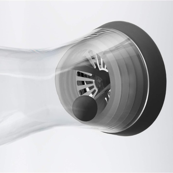 Cơ chế nghiêng đóng mở tự động khi rót. Một bộ lọc tích hợp giữ đá viên, miếng trái cây hoặc phụ gia thảo dược. Việc đóng cửa có thể được tháo rời hoàn toàn để vệ sinh và làm sạch trong máy rửa chén. Chúng vừa vặn với ngăn chứa đồ uống của tủ lạnh tiêu chuẩn.