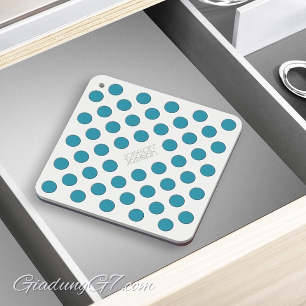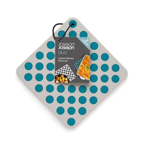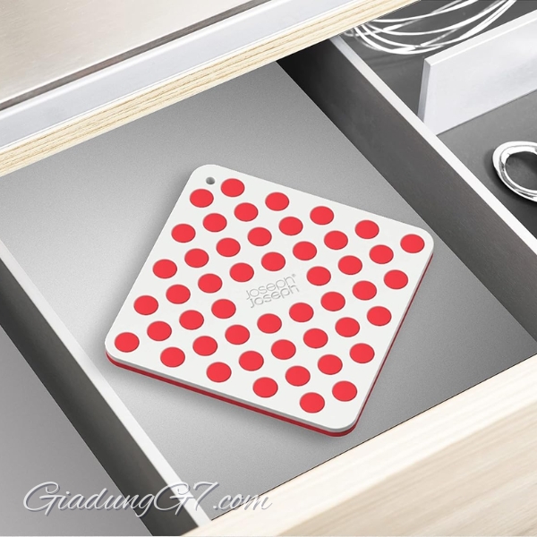 Bộ lót nồi Joseph Joseph bắt mắt này có hai giá đỡ vuông vừa khít với nhau để cất giữ gọn gàng. Để sử dụng, chỉ cần bóc ra và đặt xuống với các chấm nổi hướng lên trên.