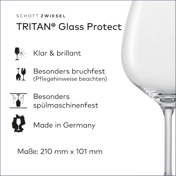 Sản xuất tại Đức: ly rượu vang của chúng tôi được sản xuất tại Đức và có độ bền đặc biệt nhờ công nghệ Tritan Glass Protect đặc biệt