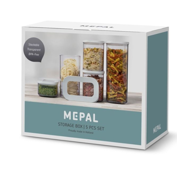 Những hộp đựng thực phẩm hình chữ nhật Modula từ Mepal với các góc bo tròn được điều chỉnh theo kích thước bao bì của các loại thực phẩm khô thông thường. Bộ 5 hộp đựng thực phẩm khô Mepal bằng nhựa trong suốt giúp bạn có thể nhìn thấy ngay bên trong các hộp đựng bằng nhựa.