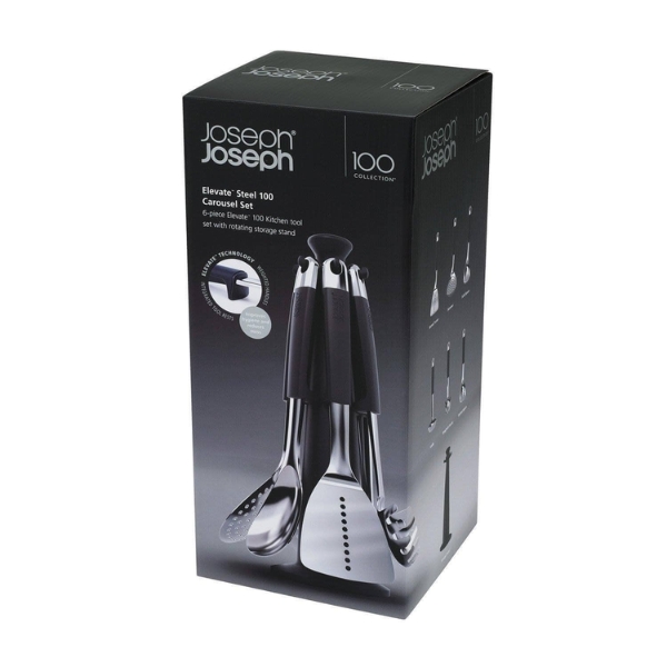 Bộ 7 món dung cụ nấu ăn Joseph Joseph 95029 Elevate Carousel 100 Được thiết kế với tay cầm có trọng lượng và giá đỡ dụng cụ tích hợp, bộ dụng cụ Elevate™ của chúng tôi giúp giảm thiểu sự bừa bộn trong nhà bếp bằng cách giữ cho đầu dụng cụ luôn được nâng lên khi đặt xuống.
