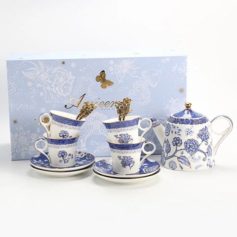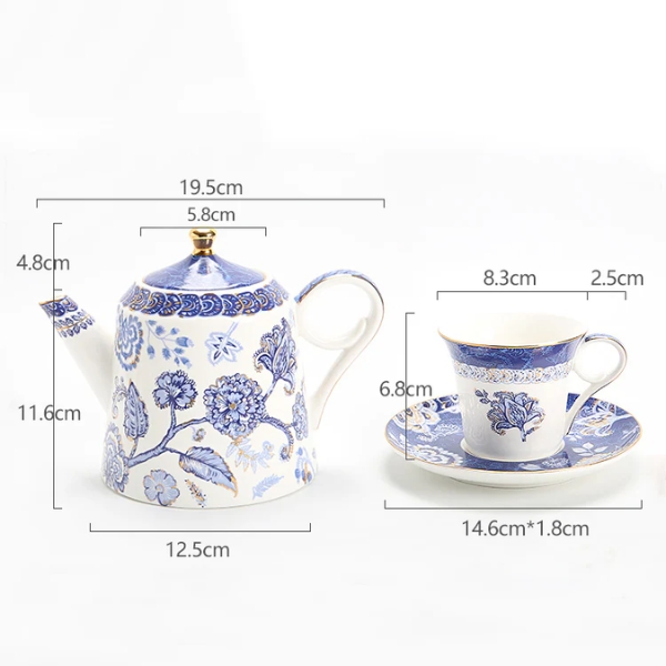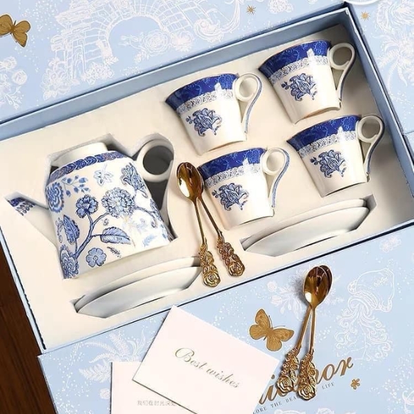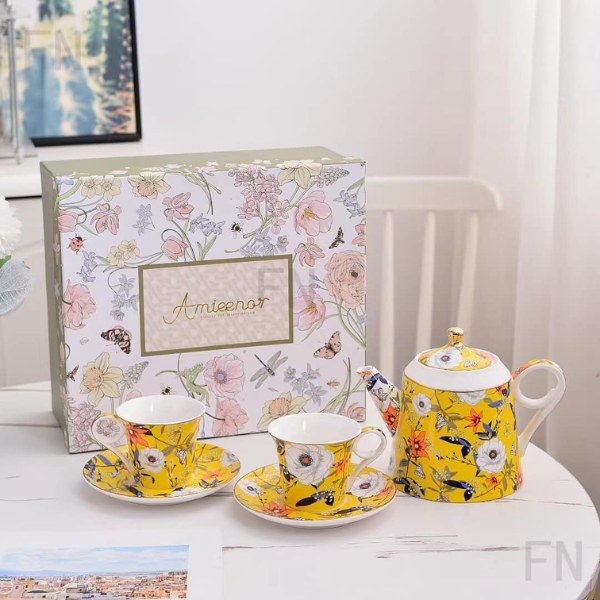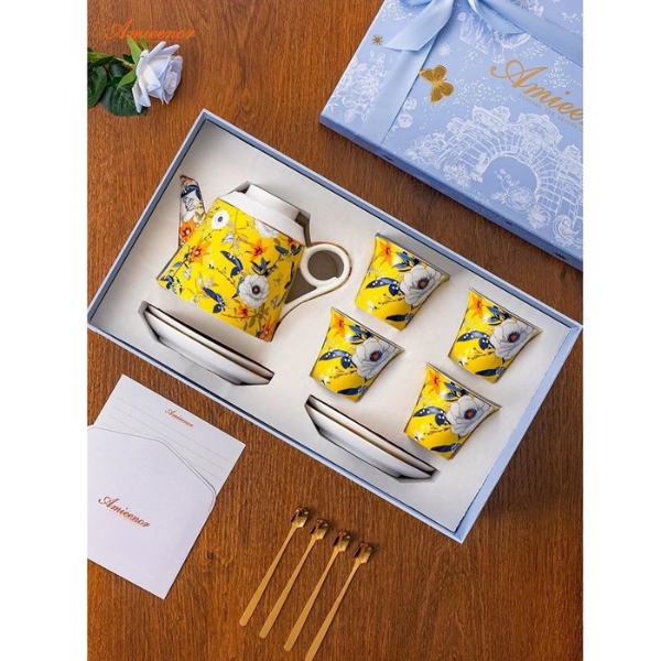 - Bộ sản phẩm bao gồm 1 ấm trà và 4 bộ tách và đĩa lót