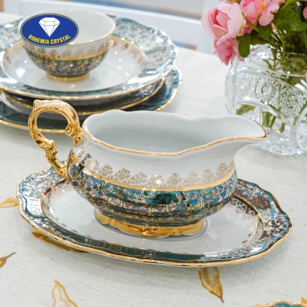Bộ đồ ăn sứ Tiệp nhập khẩu CH Séc thường rất nhẹ, thành sứ mỏng nên khi cầm lên tay rất thoải mái. Các họa tiết vẽ tỉ mỉ bằng tay và mạ dung dịch vàng 24k đem lại nét đẹp riêng cho mỗi bộ sản phẩm.
