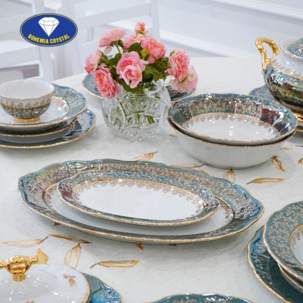 Lý Do Chọn Bộ bát đĩa sứ Tiệp nền xanh dây vàng 37 món: