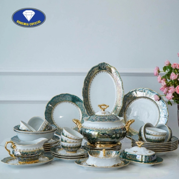Được nhập khẩu trực tiếp từ Tiệp Khắc, bộ đồ ăn sứ Tiệp nổi bật với độ bền vượt trội và khả năng chịu nhiệt tốt. Chất liệu sứ không chỉ giúp bộ đồ ăn duy trì độ sáng bóng lâu dài mà còn đảm bảo an toàn cho sức khỏe người sử dụng.