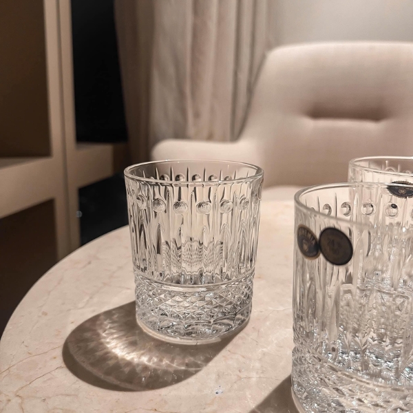 Đường nét thiết kế thanh thoát, kết hợp với ánh sáng tự nhiên, tạo nên những hiệu ứng thị giác đầy mê hoặc. Khi bạn rót nước hay rượu vào ly, ánh sáng sẽ phản chiếu qua lớp pha lê, tạo nên những gam màu lung linh.