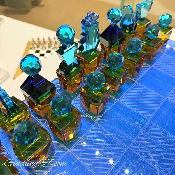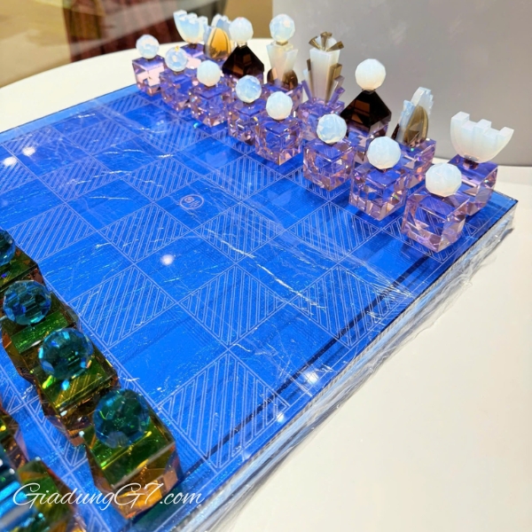 Bộ cờ vua này kết hợp các sắc thái phong phú của tím, cà phê, trắng ngọc lam, xanh sapphire và hổ phách. Kích thước bàn cờ nhỏ gọn nhưng rộng rãi mang đến một không gian chơi lý tưởng, làm cho nó trở thành một điểm nhấn phong cách cho bất kỳ căn phòng nào, từ nhà đến văn phòng.