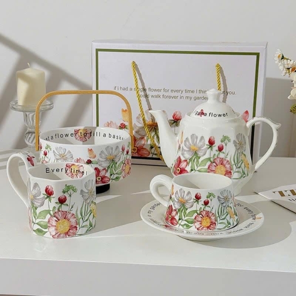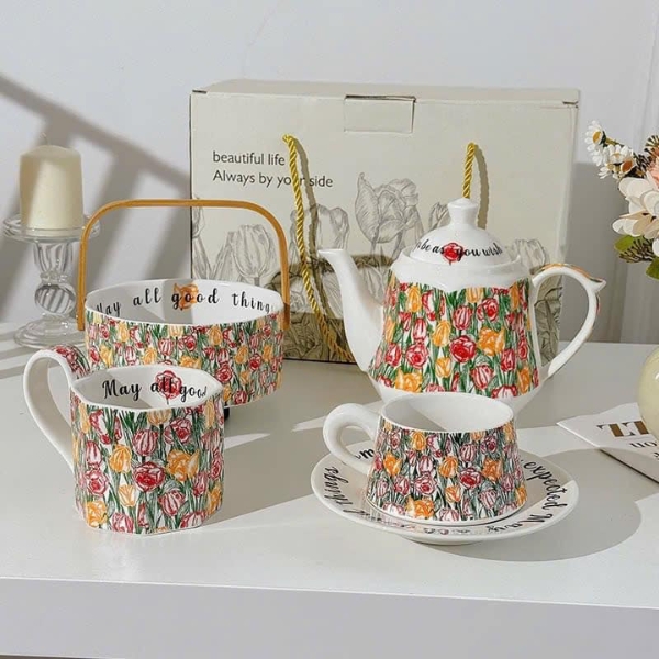 - Ấm trà sứ: Kích thước: 9,8x17,5cm, 1 lít