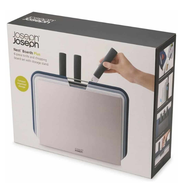 Được đặt tên theo chức năng lồng ghép tiết kiệm không gian, bộ dao và thớt Joseph Joseph Nest™ Boards Plus của chúng tôi hội tụ mọi nhu cầu cắt gọt của bạn trong một thiết kế thân thiện với mặt bàn bếp. Bộ sản phẩm bao gồm ba thớt được mã hóa màu sắc với bề mặt cắt dễ dàng sử dụng và ba loại dao nhà bếp thiết yếu. Hơn nữa, một giá đỡ lưu trữ gọn gàng giúp mọi thứ trong bếp luôn ngăn nắp.