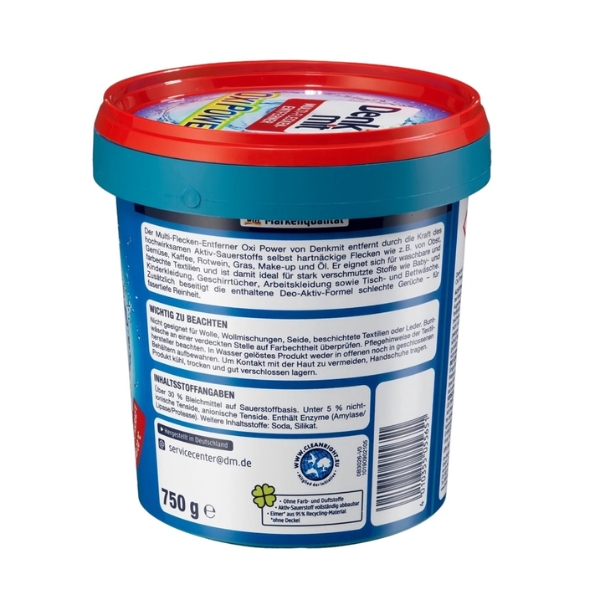 Bột tẩy vết ố trên vải Denkmit Oxi Power 750g - Công thức khử mùi hoạt tính - loại bỏ mùi khó chịu