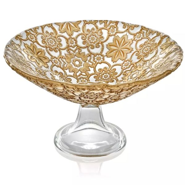 Chân bồng IVV Arabesque Gold Leaf 25cm - Tất cả các đồ vật bằng thủy tinh ép có trang trí lá vàng trên bề mặt bên ngoài của bộ sưu tập Arabesque đều có đặc điểm là thiết kế tái hiện họa tiết nguyên bản ở bên ngoài, đặc biệt sáng và rất dễ chịu khi chạm vào.