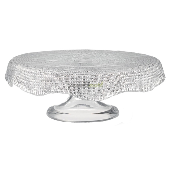 - Đế bánh có các cạnh cong từ đường nét đặc biệt bằng thủy tinh trong suốt thủ công, lý tưởng để trình bày những chiếc bánh của bạn một cách nguyên bản và tinh tế.