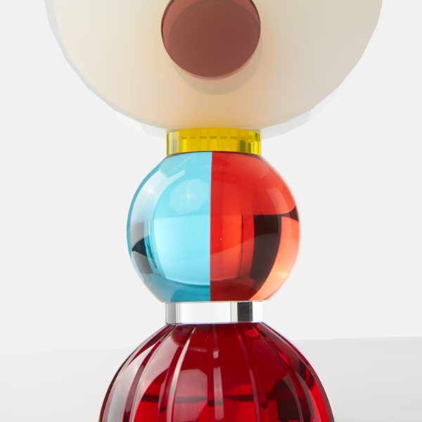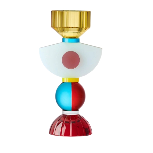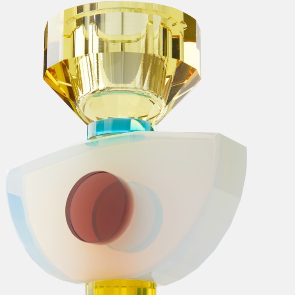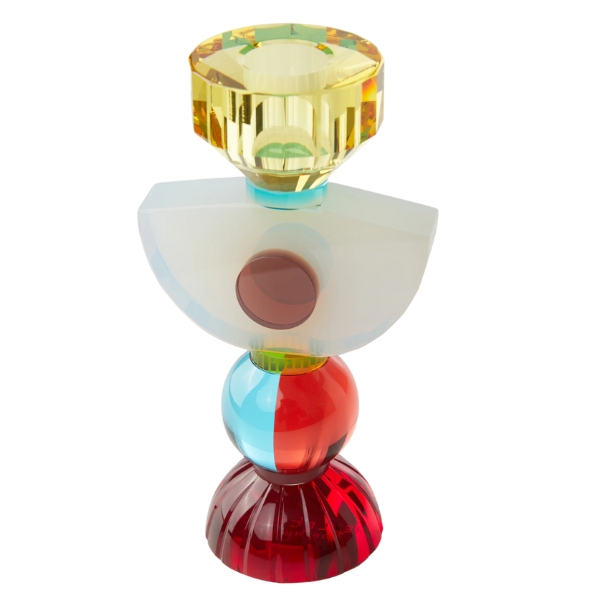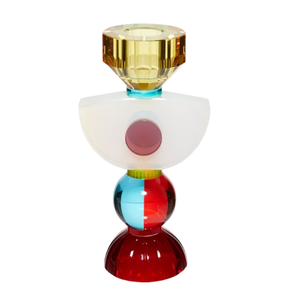 Với chân nến pha lê màu đỏ ruby, xếp chồng lên nhau bằng một quả bóng pha lê màu xanh da trời và màu cam, trên cùng là một quả cầu opal và hoàn thiện bằng phần đế nến màu hổ phách, sản phẩm này sẽ kích thích mọi giác quan của bạn. Đây là sự tôn vinh đối nghệ thuật thủ công, được sử dụng để tạo ra sản phẩm này.
