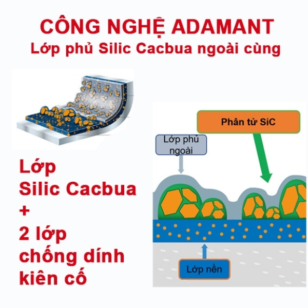 - Công nghệ chống dính Adamant giúp bề mặt chống dính hoàn hảo