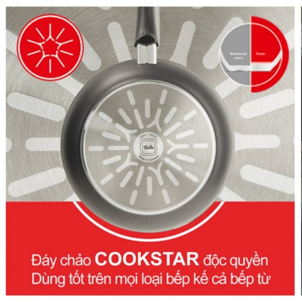 - Đế Fissler Cookstar độc quyền, tiết kiệm năng lượng giúp phân phối nhiệt tối ưu