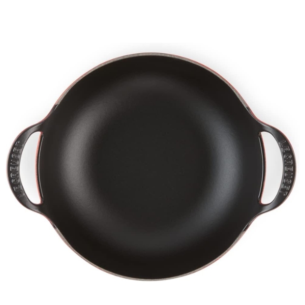 Lớp men satin đen mịn và liền mạch bên trong của đĩa Balti bằng gang tráng men lý tưởng để khuấy và trộn nguyên liệu, và phát triển lớp gỉ tự nhiên theo thời gian. Bề mặt tráng men nhiều màu sắc giúp giảm thiểu tình trạng dính và ố màu, không cần nêm gia vị trước và dễ vệ sinh.