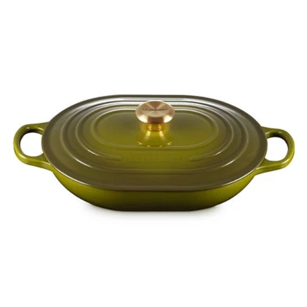 Chảo gang Le Creuset Oblong 31cm có nắp hình oval màu Màu xanh Oliu Hoàn hảo để xào, chiên sơ, hấp và phục vụ trực tiếp các món ăn lên bàn, nồi hầm hình bầu dục tráng men Signature có thể chế biến mọi thứ từ thịt nướng và cá nguyên con đến rau củ và các món ăn kèm.