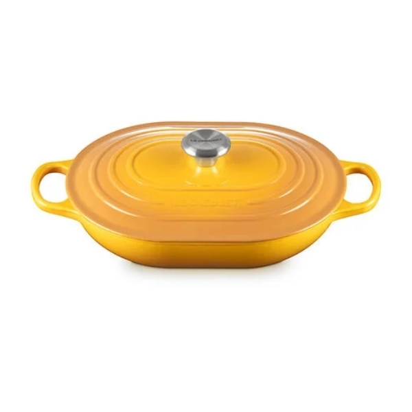 Chảo gang Le Creuset Oblong 31cm có nắp hình oval màu Màu Vàng Mù Tạt Hoàn hảo để xào, chiên sơ, hấp và phục vụ trực tiếp các món ăn lên bàn, nồi hầm hình bầu dục tráng men Signature có thể chế biến mọi thứ từ thịt nướng và cá nguyên con đến rau củ và các món ăn kèm.