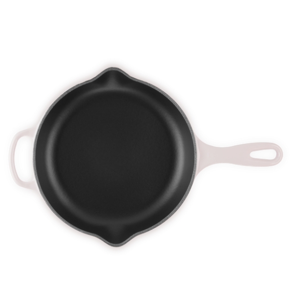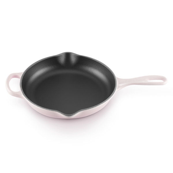 Chảo gang tròn Le Creuset có mặt nông, dốc để bay hơi nhanh và thêm 2 môi rót cho phép bạn đổ từ mọi góc độ mà không bị nhỏ giọt lộn xộn. Bạn thậm chí có thể treo chảo lên.