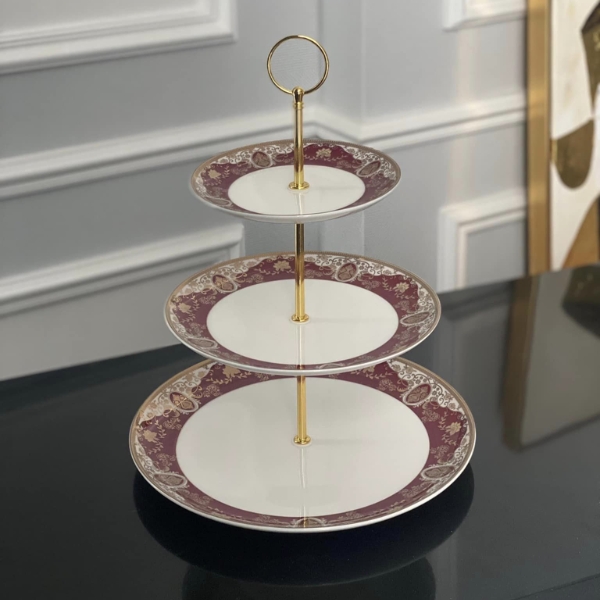 Đĩa 3 tầng Imperialondon viền đỏ thiết kế đậm nét châu Âu, hoa văn tinh xảo đến từng chi tiết nhỏ, đơn giản, sang trọng.