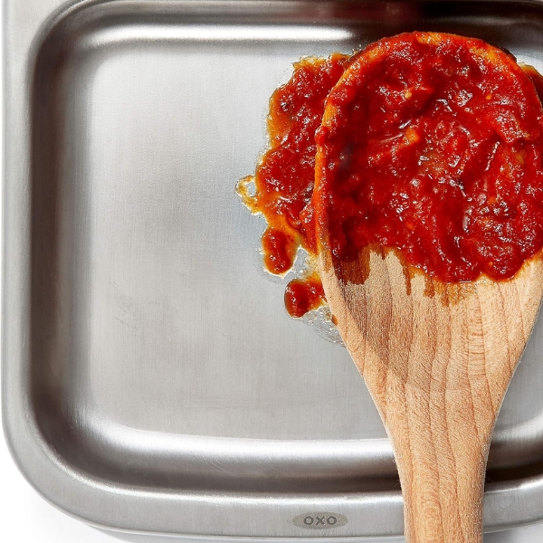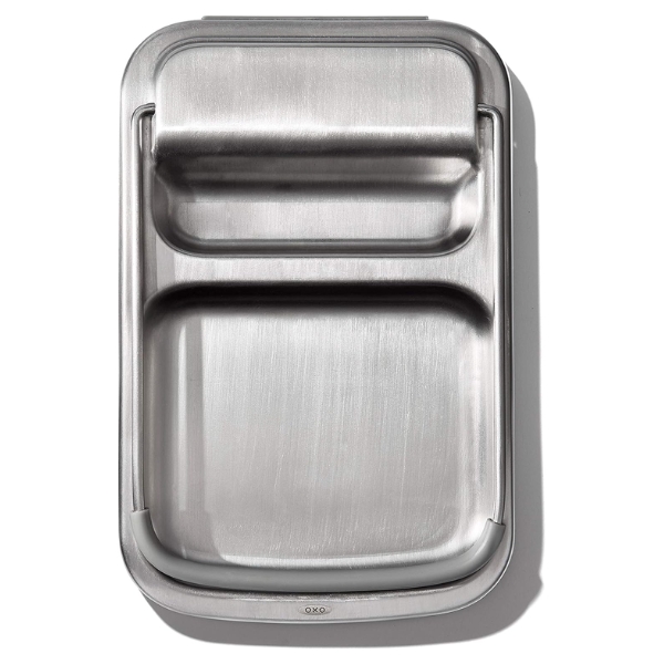 Giữ cho mặt bàn bếp và mặt bếp gọn gàng với Giá để thìa bằng thép không gỉ OXO Good Grips có giá để nắp. Thiết kế hai trong một bao gồm một đế có kích thước rộng rãi có thể chứa nhiều hoặc nhiều dụng cụ quá khổ và Giá để nắp bằng dây giúp giữ nước ngưng tụ và nhỏ giọt khỏi bề mặt để dễ dàng vệ sinh.