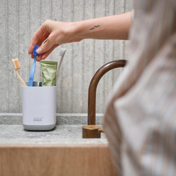 Hộp đựng bàn chải đánh răng Joseph Joseph 70509 có thiết kế thông minh với nhiều ngăn khác nhau, cho phép bạn sắp xếp các vật dụng chăm sóc răng miệng một cách dễ dàng và ngăn nắp. Những ngăn này có thể chứa cả bàn chải đánh răng điện và bàn chải tay, cùng với tuýp kem đánh răng, mang lại sự tiện lợi tối đa trong việc tổ chức không gian vệ sinh.