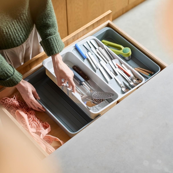 Khay đựng dụng cụ nhà bếp nới rộng Joseph Joseph 8500016 - Hãy sắp xếp ngăn kéo nhà bếp của bạn gọn gàng hơn với hộp đựng dao kéo và dụng cụ nhà bếp thông minh có thể mở rộng này. Với năm ngăn sâu, một phần dài để xiên que và các cạnh có thể mở rộng để đựng dụng cụ, nó thích ứng với không gian của bạn đồng thời giữ mọi thứ ngăn nắp.