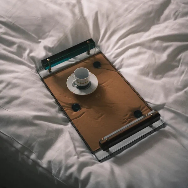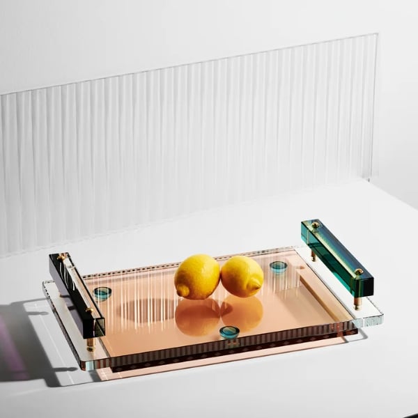 Chiếc khay xa hoa này không chỉ lý tưởng để vận chuyển đồ đạc mà bạn còn có thể đặt một số đồ vật pha lê tinh xảo và lấp lánh khác của Reflection Copenhagen để chiêm ngưỡng.