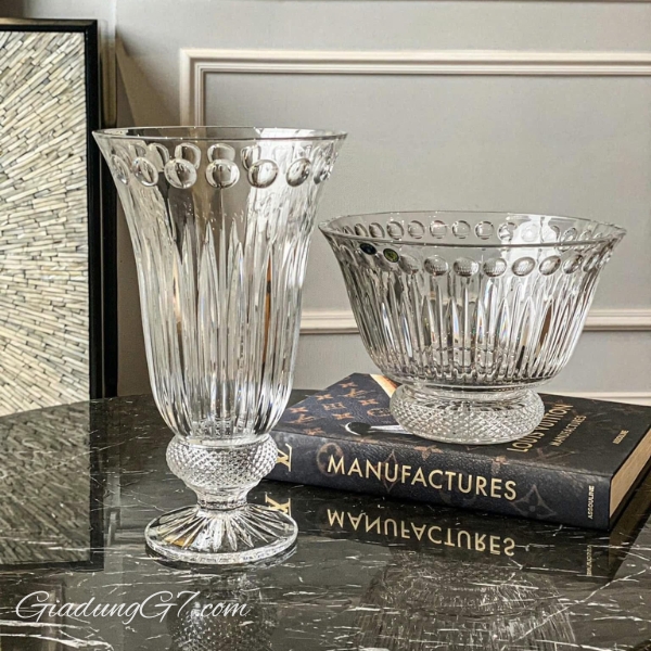 Điểm nhấn nổi bật nhất là các đường nét hoa văn được mài hoàn toàn bằng tay, làm cho bộ sản phẩm có độ ánh quang cao, tạo thành tán sắc 7 màu lung linh, đẹp mắt và ấn tượng. Chính vì thế các dòng pha lê mài có giá thành sẽ gấp 1,5 lần so với pha lê thường hoặc pha lê trơn.