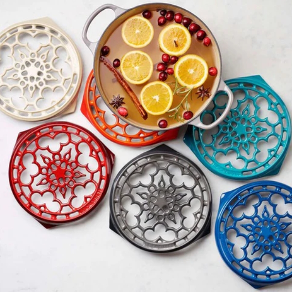 Lót nồi gang Le Creuset 22cm sang trọng của chúng tôi được thiết kế riêng để bảo vệ khăn trải bàn, mặt bàn đá cẩm thạch và bề mặt gỗ khỏi nhiệt độ trực tiếp, đồng thời tạo điểm nhấn trang trí cho mặt bàn của bạn.