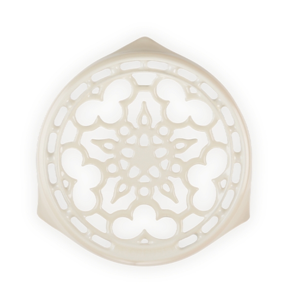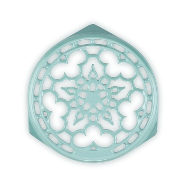 Với đường kính 9 inch, chiếc giá đỡ hình tròn này với hình dạng ba chân giúp nâng cao đồ nấu ăn nóng, bảo vệ khăn trải bàn và bề mặt gỗ khỏi nhiệt đồng thời tạo điểm nhấn trang trí cho bất kỳ mặt bàn hoặc bộ bàn nào. Phần trung tâm phức tạp của nó phản ánh các yếu tố kiến trúc bằng gang và sắt rèn chi tiết của Belle Epoque (tiếng Pháp có nghĩa là "Thời đại tươi đẹp").
