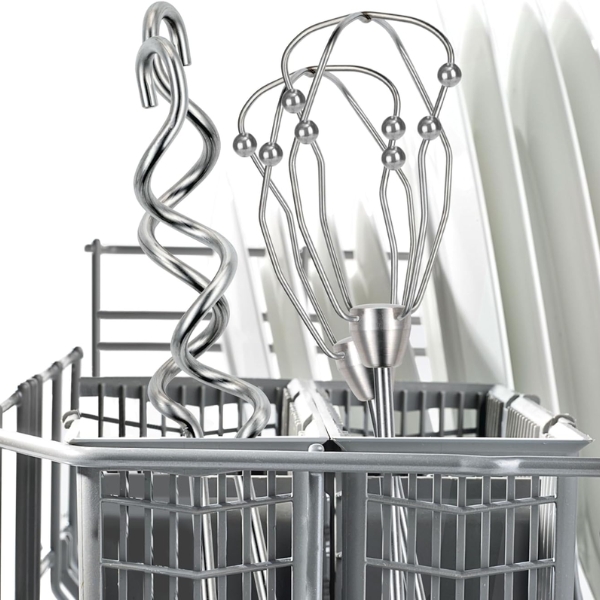 Máy trộn cầm tay được thiết kế với động cơ 450 watt. Máy trộn cầm tay thiết kế sang trọng với màu trắng/than chì, được trang bị động cơ 450 watt. Điều này giúp bạn dễ dàng chuẩn bị các công thức nấu ăn yêu thích. | Dụng cụ trộn có thể rửa bằng máy rửa chén. Chổi đánh trứng FineCreamer Turbo hiệu suất cao đảm bảo kết quả đánh và khuấy lý tưởng, cho khối lượng lớn hơn trong thời gian ngắn hơn. Ngoài ra, 2 móc nhào bột bằng thép không gỉ chắc chắn đảm bảo thao tác hiệu quả và thoải mái. Cả que đánh trứng và móc nhào bột đều có thể rửa sạch bằng máy rửa chén. |