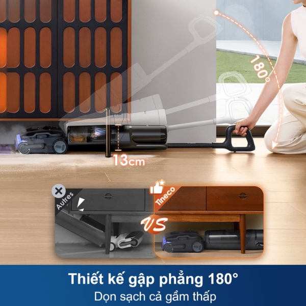 Máy hút bụi và hơi nước làm sạch các ván chân tường và các góc khó tiếp cận trong phạm vi 0,20 inch ở cả hai bên, không để lại khoảng trống hoặc vết bẩn nào như máy làm sạch thảm của Tineco.
