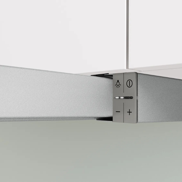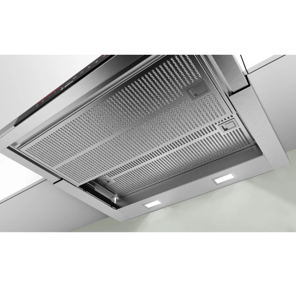 Máy hút mùi Bosch DFR067A52 được thiết kế âm trong tủ bếp phía trên mang lại không gian bếp gọn gàng, tạo nên điểm nhấn nhất định. Lớp vỏ máy màu inox cao cấp dễ dàng vệ sinh, mang lại độ sáng bóng không tì vết. Kiểu dáng mang phong cách Châu Âu hiện đại nâng tầm không gian bếp.