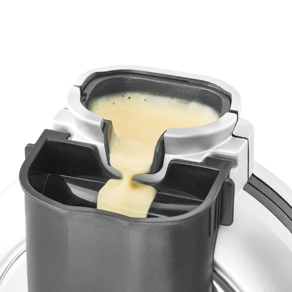Tất cả những gì người dùng phải làm là đổ bột vào thiết bị từ trên xuống để phân bố đều. Bột thừa được thu gom vào một thùng chứa để có thể dùng làm bánh quế tiếp theo. Điều này đảm bảo rằng không có gì lãng phí và làm cho việc chuẩn bị trở nên siêu sạch. Không có gì được đưa vào thiết bị. Những chiếc bánh quế có hình tròn hoàn hảo.