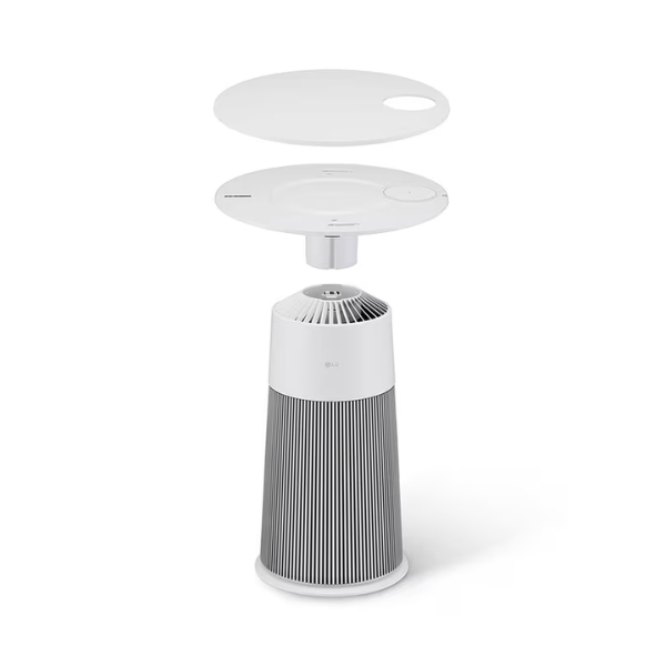 Mặt trên nhẵn mịn của sản phẩm mới đầy sáng tạo của LG cung cấp một nơi hữu ích để cất giữ các vật dụng gia đình hoặc trưng bày các đồ vật trang trí. Nó cũng tích hợp các nút điều khiển thuận tiện ở mặt dưới để bật/tắt nguồn thiết bị và để quản lý các chế độ luồng không khí và các tính năng chiếu sáng theo tâm trạng.