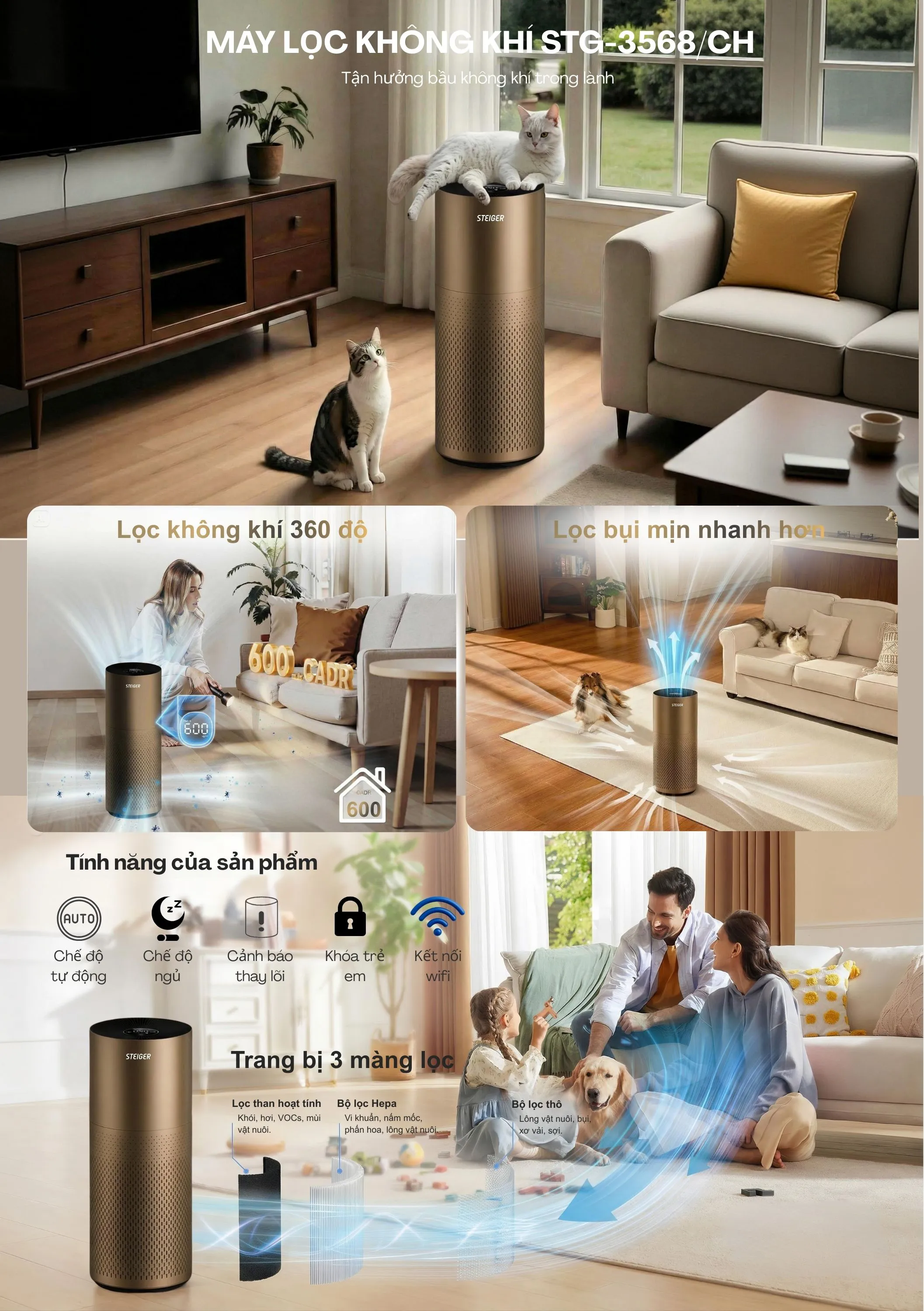 Tính năng Máy lọc không khí Steiger STG3578/CH - Màu Nâu