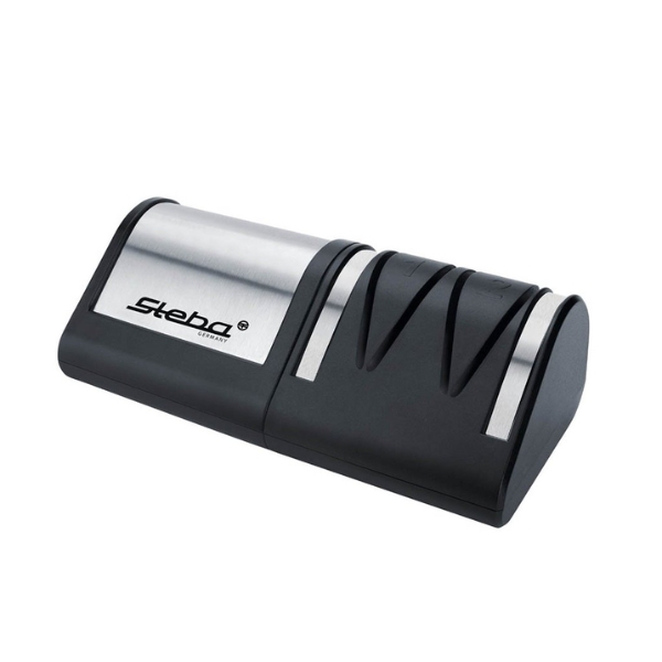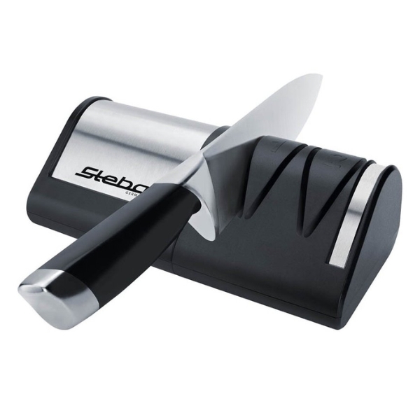 Hầu hết các loại dao đa năng đều có thiết kế này, vì vậy Steba đã chế tạo các bánh xe mài của mình theo một góc cụ thể để cho phép một lưỡi dao được mài và đối xứng hoàn hảo, giảm số lần bạn sẽ phải mài dao.