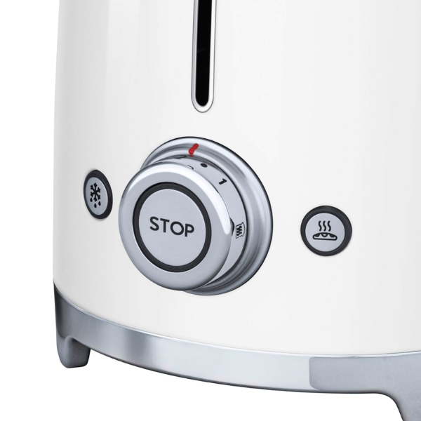 Máy nướng bánh mỳ 2 lát Smeg TSF01WHEU Có hai điều khiển riêng biệt chiếu sáng và cung cấp sáu cấp độ nướng khác nhau để có được bánh mì nướng ở kết cấu lý tưởng để có kết quả thơm ngon nhất; cũng bao gồm một chức năng bagel