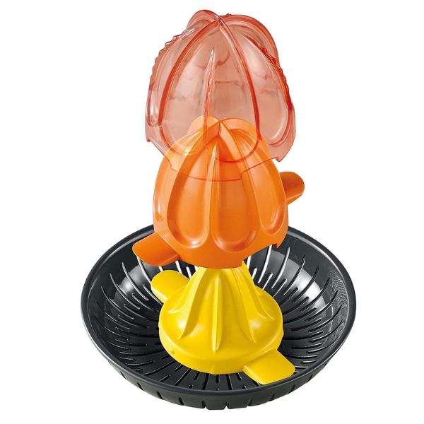- Máy ép cam chanh điện dễ sử dụng với 3 phễu ép có thể xếp chồng lên nhau để ép nhiều loại trái cây khác nhau: bưởi, cam, chanh