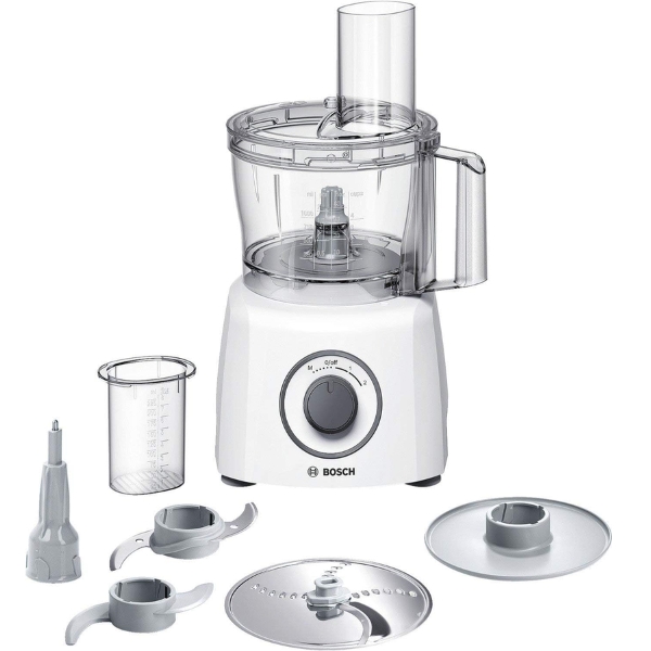 Máy xay cắt đa năng Bosch MCM3200W MultiTalent 3 là máy xay thực phẩm màu trắng với cối trộn bằng nhựa. Cối xay lớn chứa được 2,3 lít tính đến mép cối và 1,2 lít tính đến vạch cao nhất. Máy xay thực phẩm này tương đối nhẹ, chỉ nặng 2,5 kg. Dây điện khá ngắn, chỉ 100 cm.
