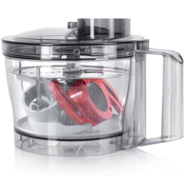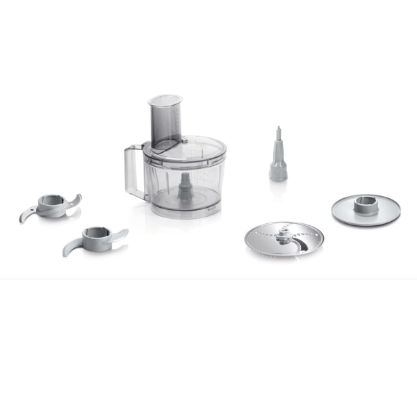 | Phụ kiện đi kèm | 1 x nắp, 1 x tô trộn nhựa 500g, 1 x đĩa đánh, 1 x đĩa cắt và xé có thể đảo ngược, 1 x dụng cụ đẩy, 1 x dao đa năng, 1 x giá đựng phụ kiện, 1 x dụng cụ nhào bột bằng nhựa, 1 x nắp bảo vệ lưỡi dao |
