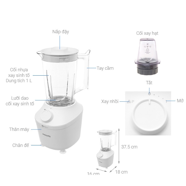 - Dung tích cối: Dung tích hiệu quả 1 lít