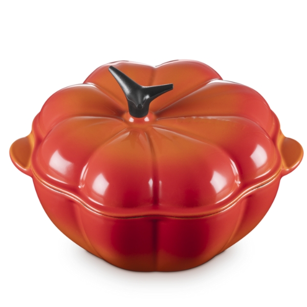 Nồi gang Le Creuset bí ngô 22cm - Màu đỏ cà chua - Nướng và phục vụ từng phần súp, món hầm hoặc rau củ với những quả bí ngô gốm xinh xắn này. Lấy cảm hứng từ giống bí ngô Rouge Vif d'Etampes truyền thống của Pháp – cùng giống bí ngô đẹp mắt được dùng để khắc họa cỗ xe của Lọ Lem – những quả bí ngô này mang đến nét điêu khắc tinh tế cho mặt bàn.