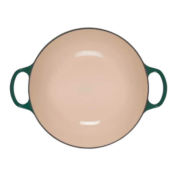 Nồi gang Le Creuset Marmite Olive Cành oliu 28cm 4.9L - Màu xanh là dụng cụ lý tưởng để nấu súp, món hầm, các món ăn một nồi và nhiều món khác. Thành nồi dốc giúp khuấy trộn hiệu quả hơn bằng cách duy trì chuyển động liên tục ngay cả khi đậy nắp.