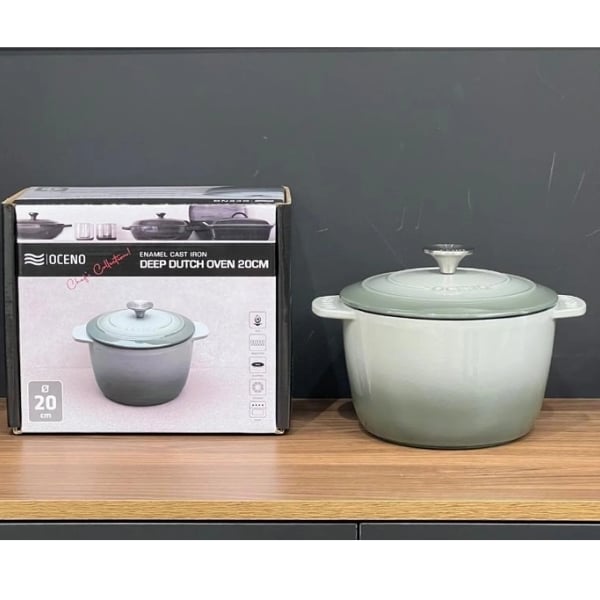 Nồi gang Oceno 20cm (cao 13cm) là dòng sản phẩm nồi gang cao cấp có đầy đủ các ưu việt của nồi gang truyền thống, được thiết kế theo phong cách hiện đại với màu sắc bắt mắt. Nồi gang Oceno chuyên dùng để chế biến các món ăn cần nhiệt độ cao như món hầm, nướng ...có thể sử dụng trên mọi loại bếp.